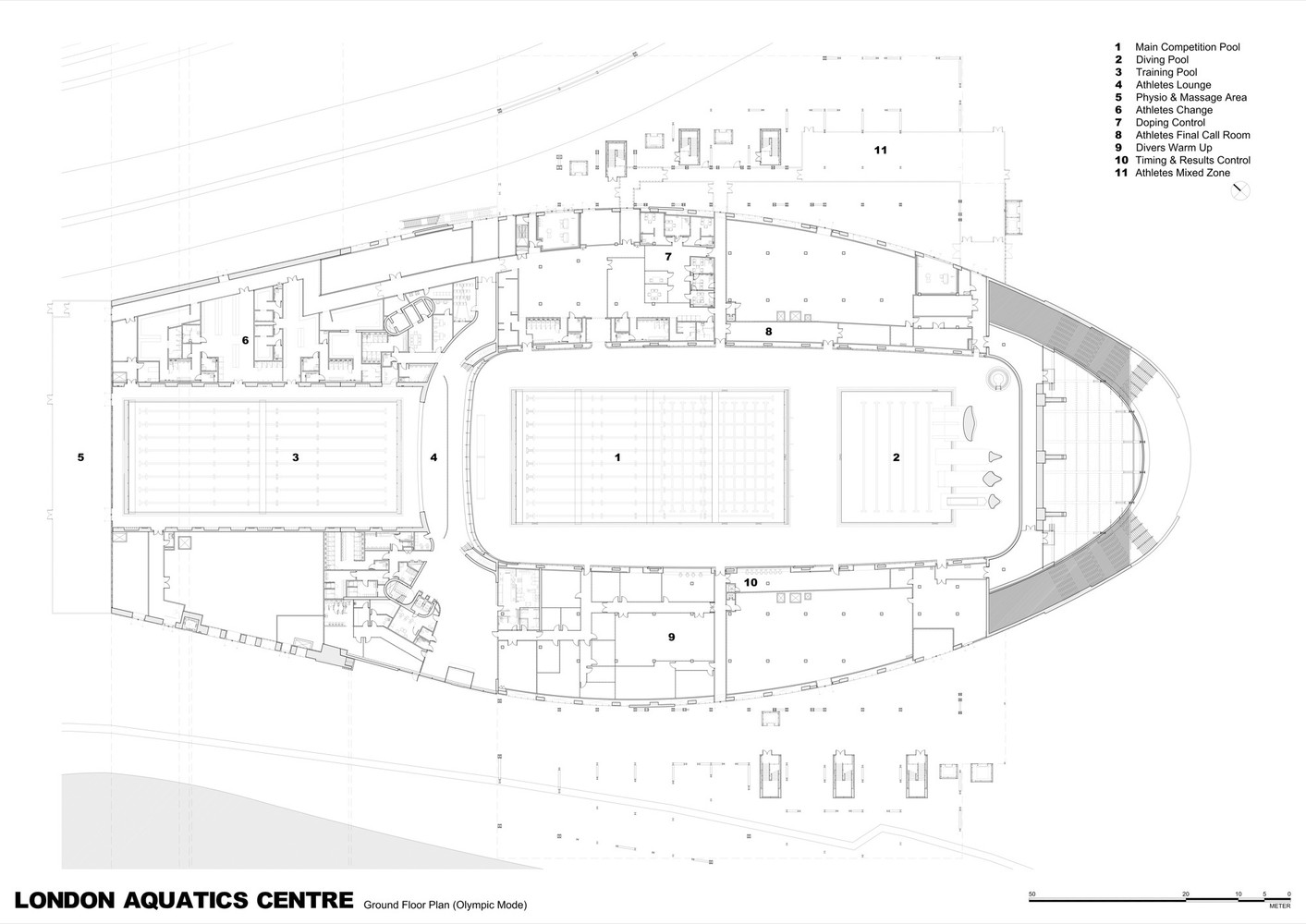 The London Aquatic Centre is designed to accommodate the London 2012 Olympic Games whilst also providing the optimum size and capacity for use in legacy mode beyond the event.