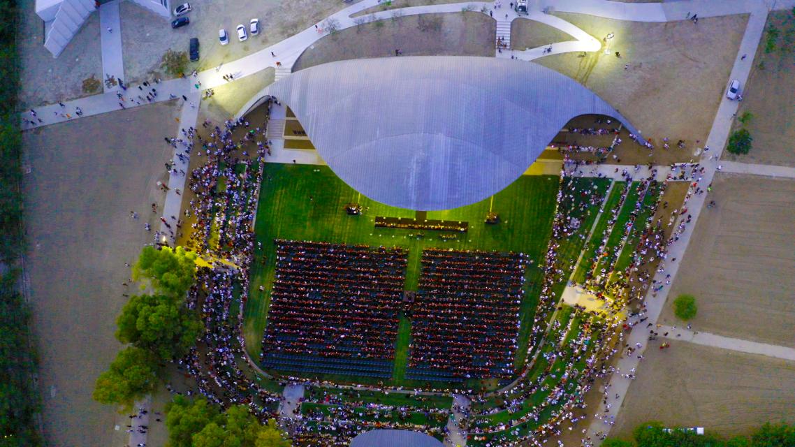 The Open Theatre Performance Centre is situated on the Cyprus International University (CIU) campus, located on the northern side of the island. This diverse environment hosts communities from over 100 countries, predominantly from Muslim backgrounds. The Centre serves as a communal space for daily life and is well-equipped for large-scale extracurricular events, seamlessly blending public and social activities. It enriches international student life and fosters social and cultural exchange between Turkish Cypriots and the university’s diverse community, promoting cultural pluralism and enhancing urban life quality. Completed in Summer 2022, the Centre functions as a green park and versatile venue for various experiences, including sports, performances, musical and cinematic events, and graduation ceremonies with a capacity to host up to 10,000 people.